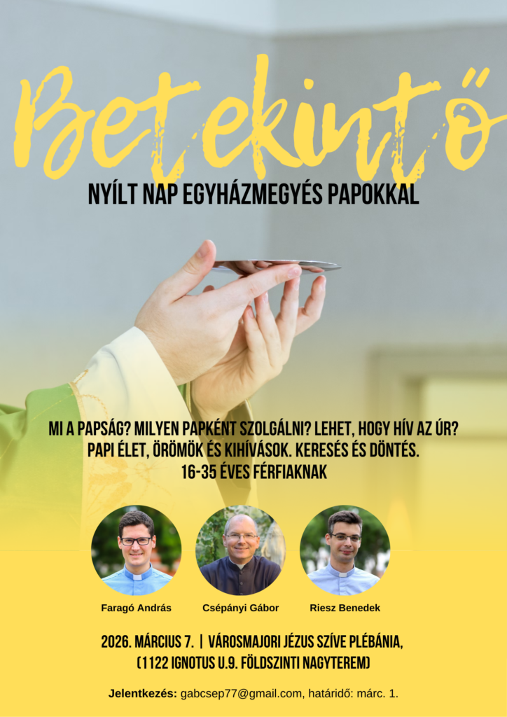 Nyílt nap lesz a városmajori plébánián papság iránt érdeklődő, 16 és 35 év közötti nőtlen fiúk és fiatalemberek számára március 7-én, szombaton Csépányi Gábor, Riesz Benedek és Faragó András atyák szervezésében. További információt kérni és jelentkezni a gabcsep77@gmail.com címen lehet.
