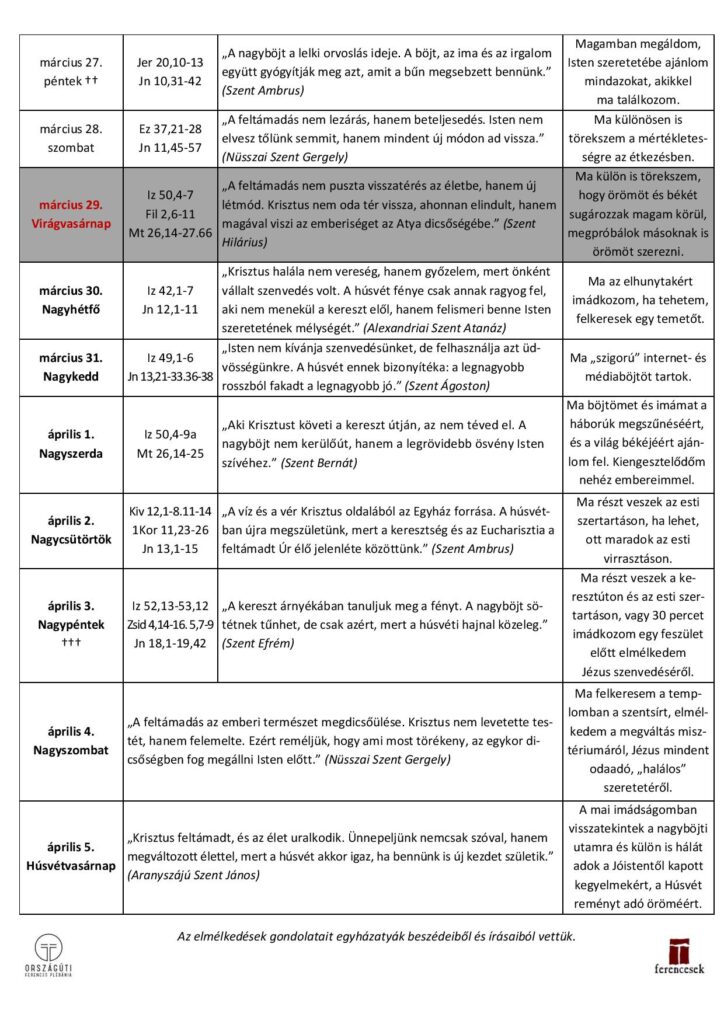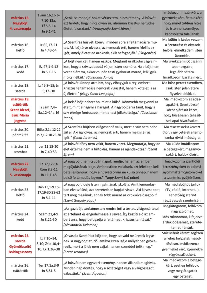 Nagyböjti naptár