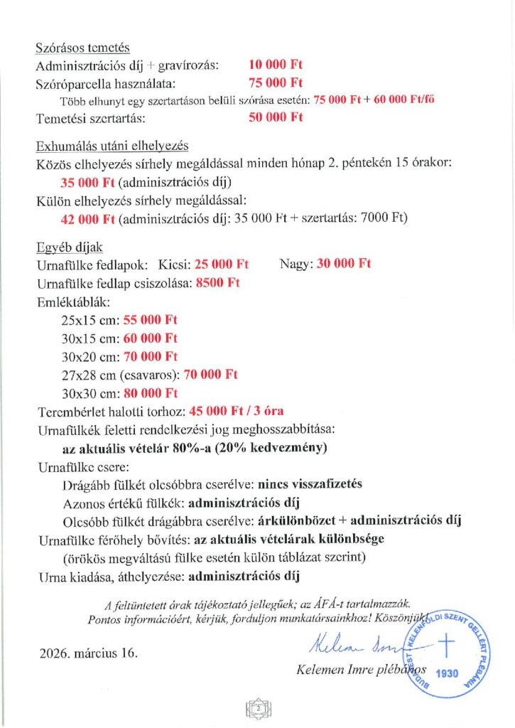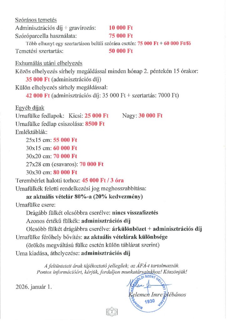FIGYELEM! Banki átutalás esetén a megkötött szerződések csak a vételáruknak a plébánia bankszámlájára történő beérkezése után válnak érvényessé, a megrendelt temetői szolgáltatások pedig csak ebben az esetben lesznek végrehajtva, illetve elvégezve.